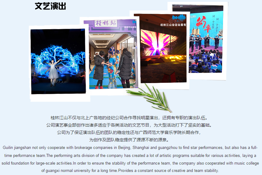 桂林江山會議會展有限責(zé)公司是一家專業(yè)的MICE公司;是傳統(tǒng)服務(wù)與信息技術(shù)相結(jié)合的科技型公司。 公司立足于線下活動的豐富經(jīng)驗,堅持運用信息技術(shù)為各類活動(項目)提供更優(yōu)質(zhì)與便捷的管理與服務(wù)。公司開發(fā)的《冬瓜云服務(wù)與管理系統(tǒng)》《雙線展覽平臺》《注冊通》《報到通》《多點位全景直播平臺》等應(yīng)用軟件處于行業(yè)領(lǐng)先地位。桂林江山會議是一個大家庭,于2012年創(chuàng)立,經(jīng)過長期的經(jīng)營,吸納與培訓(xùn)了大批關(guān)于會務(wù)服務(wù)、設(shè)計創(chuàng)意、公關(guān)演藝、會獎活動、信息技術(shù)等項目的眾多專業(yè)人材,涉及展覽工程搭建、慶典活動策劃、影視制作與直播、大型文藝演出、會獎旅游、H5、小程序等軟件的開發(fā)等眾多業(yè)務(wù)。江山會議由一支具有超前的營銷理念并...